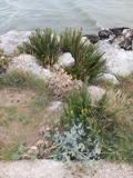 Eryngium maritimum, Elymus farctus e Limbarda crithmoides, molo alla foce del T. Arzilla a Fano, luglio 2025