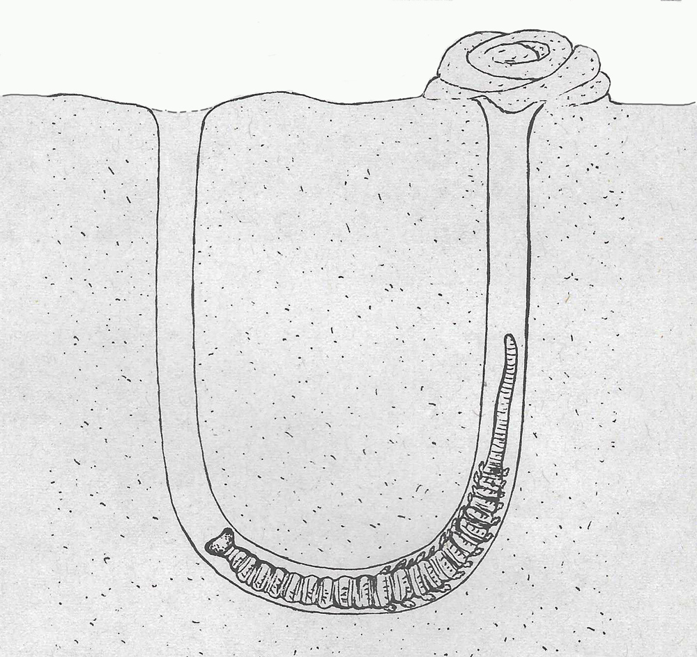 L'Arenicola marina (Linnaeus, 1758), è un anellide lungo 20-25 cm con una serie di ciuffi branchiali respiratori a metà corpo. La sua presenza a bassa marea è indicata da un monticello di sabbia in forma di cilindretto avvolto a spirale (le pseudofeci dell’animale), in corrispondenza di una delle due aperture della sua tana sottostante a forma di "U", mentre dall'altra in forma di piccolo cratere aspira l'acqua e la sabbia mista a particellato organico. In questa galleria l'Arenicola, orientata con l'estremità caudale dalla parte del monticello di deiezioni, con un ciclo regolare in rapporto alla marea si nutre ingerendo la sabbia, rinnova l'acqua e si sposta indietro per defecare. Nell'Adriatico antistante la Provincia di Pesaro e Urbino è stata osservata diverse volte nelle acque basse presso riva a Fano.