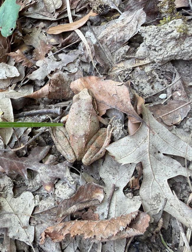 Rana montana. In alto: maschio adulto in periodo riproduttivo, con sfumatura azzurro-grigiastra a livello della gola, Foreste Casentinesi (FC), marzo 2013 (foto L. Coppari), in basso: girino, Dolomiti a 2300 m di quota in una pozza, luglio 2020 (foto V. Dionisi)